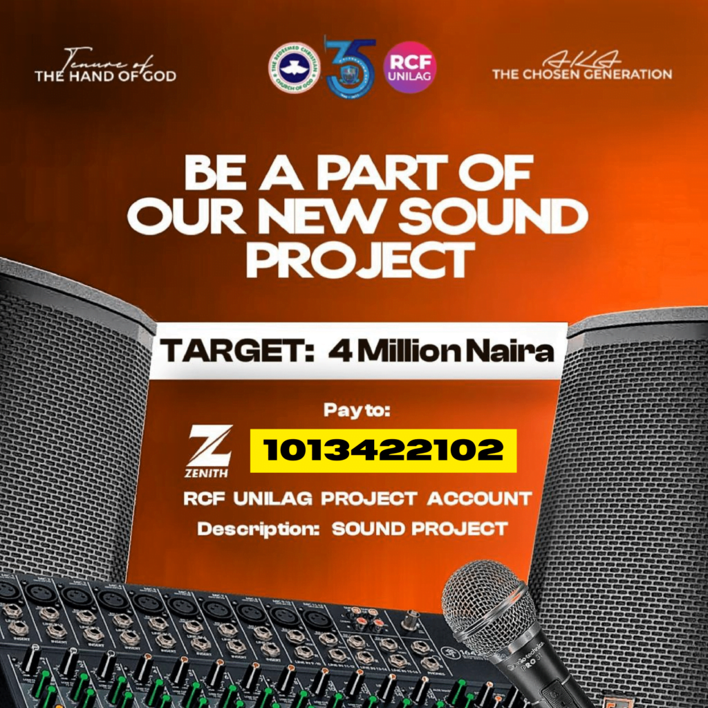 RCF’s organizing unit calls for support as we take our sound system to a new level. The fellowship is on a project of purchasing new sound equipment. The support of everyone can make this a reality in due time. Thank you. RCF one family. 👫